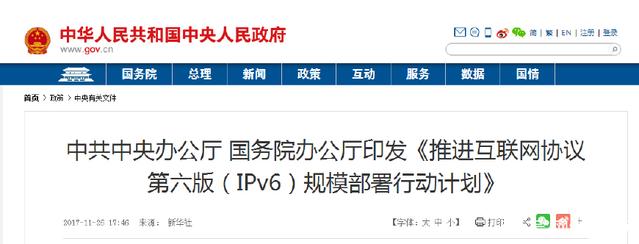 國家說了,2018年底一部分地區(qū)已經(jīng)可以用上IPv6了,到2020年,基本普及IPv6,到2025年,全面支持IPv6。